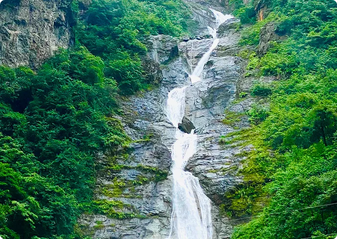 公里的徒步路线串联起飞天瀑布、千尺瀑布、珠帘瀑布等十余处水景,夏季飞瀑轰鸣,冬季形成冰挂奇观,其中飞天瀑布需穿越吊桥后沿右侧陡峭步道抵达,是网红打卡点。