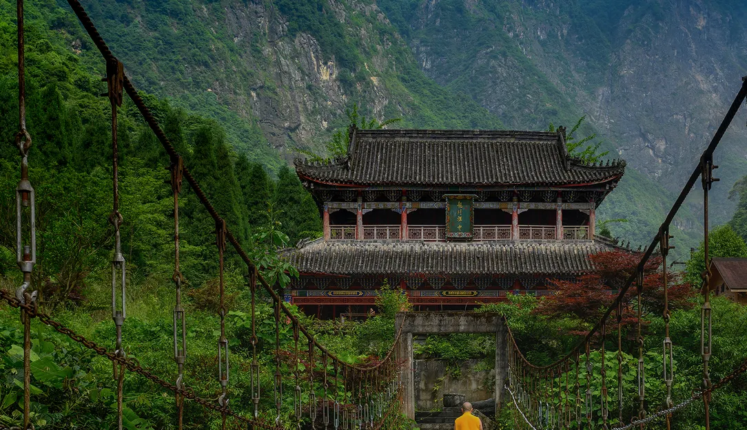 龙门古寺始建于唐代,现存清代重建的大雄宝殿,寺内保存有明代壁画残片;百年牡丹观赏区种植着树龄超百年的 “彭州紫” 等珍稀品种。